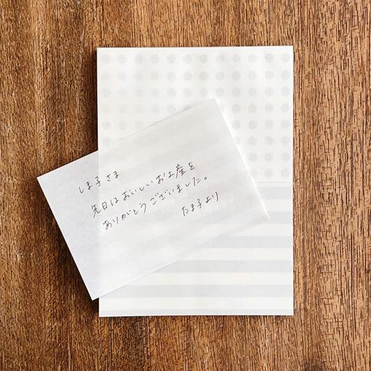 ミシン目はんぶんこメモパッド 水玉×縞々 02 グレー