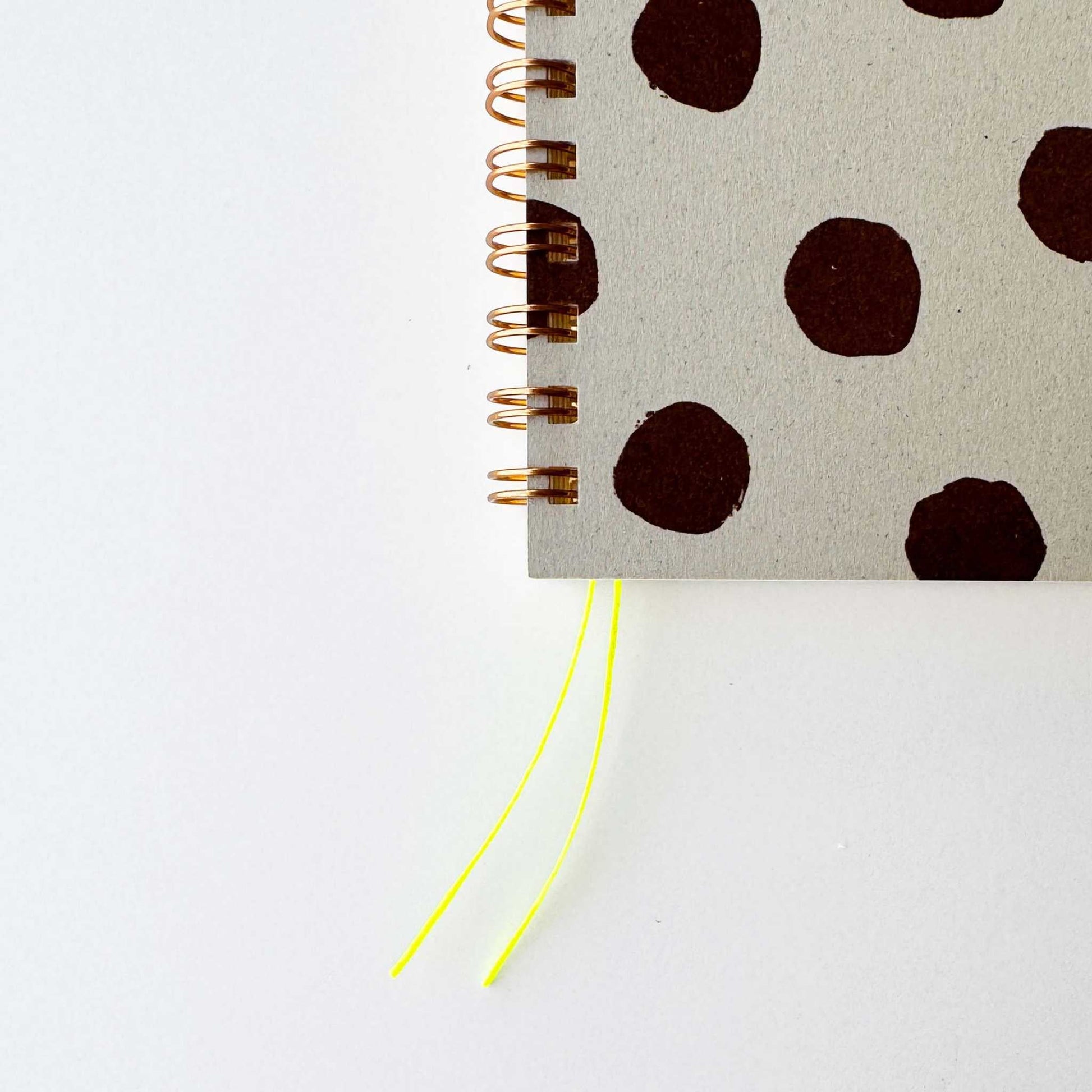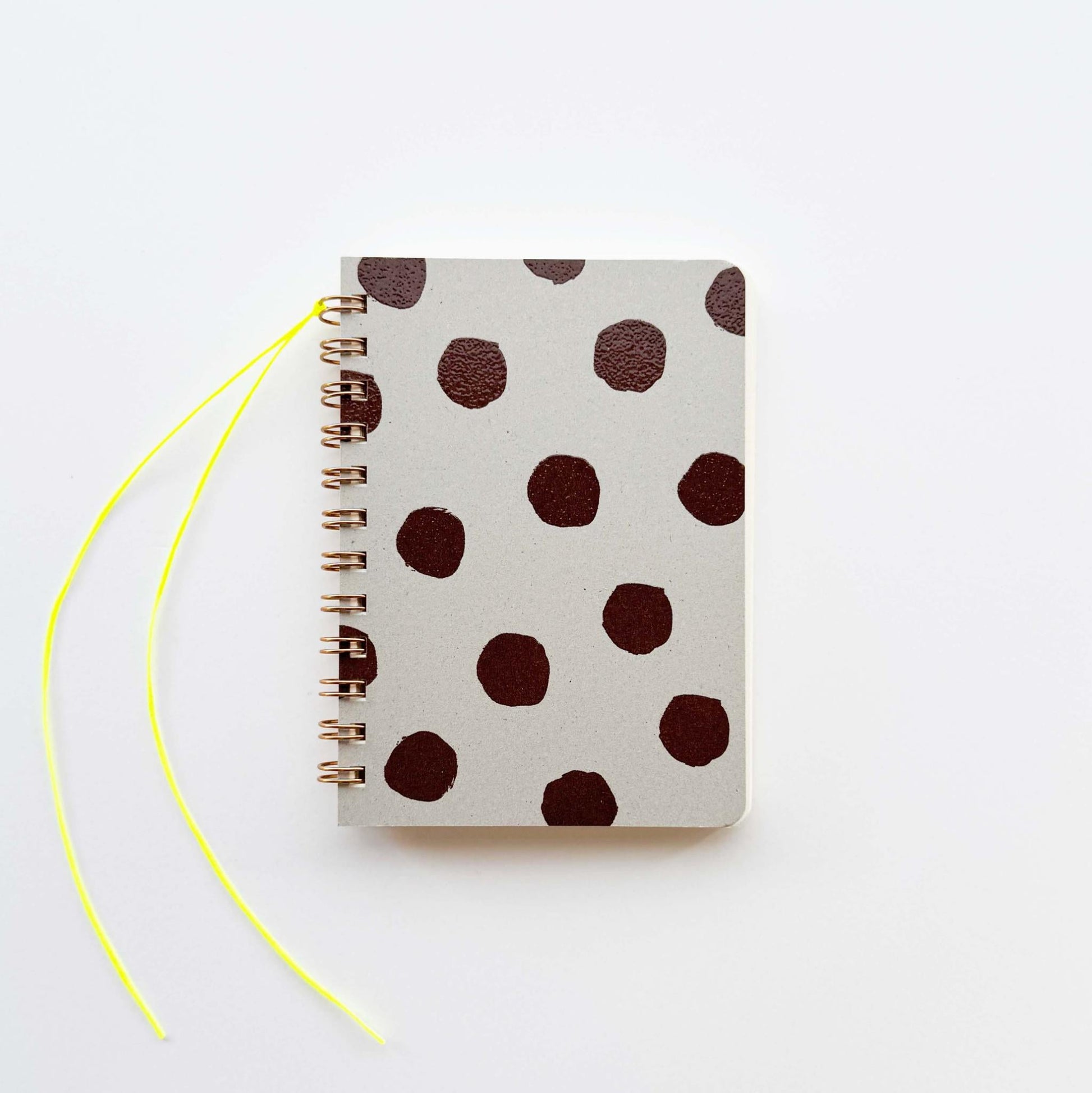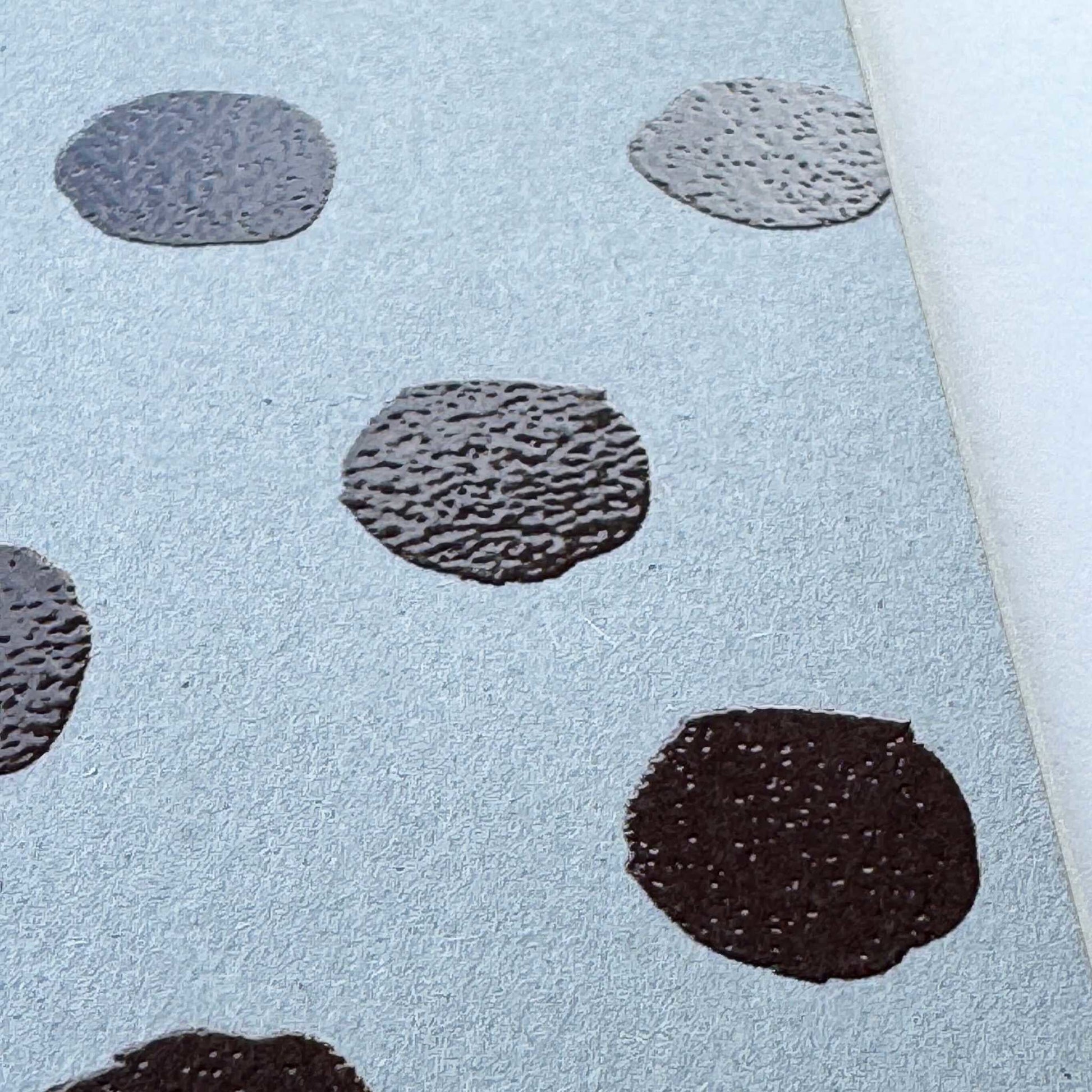 A compact, palm-sized ring notebook featuring two wax cord bookmarks that resemble little “shippo (tails).The “Polka Dots 03” design features charming, large rounded dots, with slightly raised ink that pairs beautifully with the subtly textured paper for a rich tactile feel. The inner pages are made from “Menuet” paper, known for its soft, airy texture and smooth writing experience with both pen and pencil. The two separate bookmarks allow you to mark different pages and use them as needed.